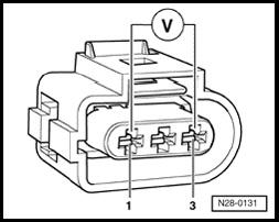 - Connect multimeter with test leads to terminals 1 and 3 connector for voltage measurement.