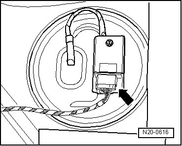 - Disconnect the Fuel Pump (FP) Control Module (J538) electrical harness connector - arrow -.