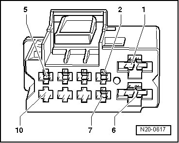- Using a Multimeter, check the Fuel Pump (FP) Control Module (J538) electrical harness connector terminals 1 to 6 for voltage.