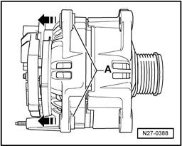 - Drive threaded sleeves -A- out of generator housing approx. 4 mm in direction of -arrow -.