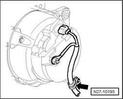 - Screw wire retainer -arrow- firmly to rear side of generator in 9 o'clock position.
