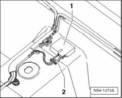- Component location: in luggage compartment, center, in front of spare wheel well