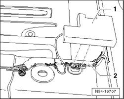- Align foam piece -1- together with antenna at wiring -2- on center console.