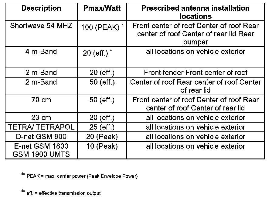 - Deviations from these guidelines (location of antenna, frequency, output) are only permitted in special isolated cases after a single-case test carried out by the EMV center of VWAG in Wolfsburg.