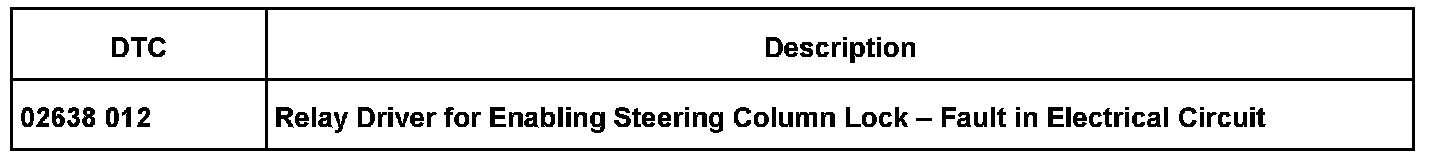 Steering Column, Electronic Lock Inoperative, DTC 02638012 Stored in Gateway Control Module