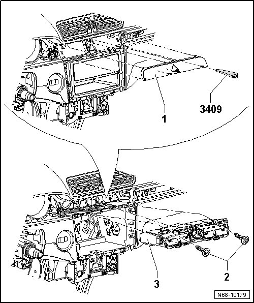 - Remove cover plate carrier - 3 - from instrument panel.