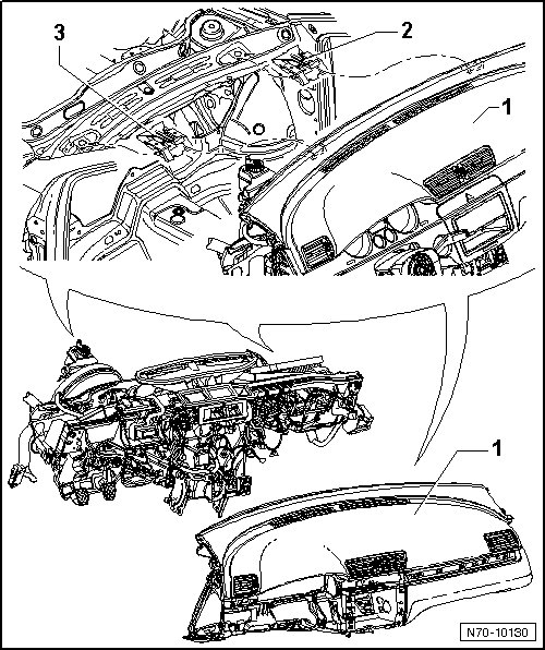 - Remove screw - 1 - behind instrument cluster (3.5 Nm).