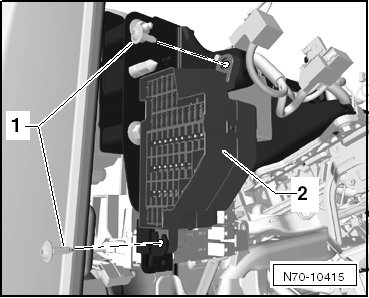 - Remove the screws - 1 - (4 Nm) and move the fuse panel C (SC) - 2 - to the side.
