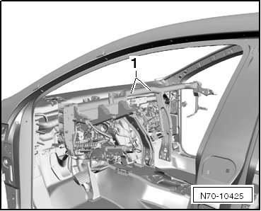 - Remove nut - 1 - (3.5 Nm) on right side of instrument panel.