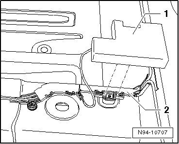 - Align foam piece - 1 - together with antenna at wiring - 2 - on center console.
