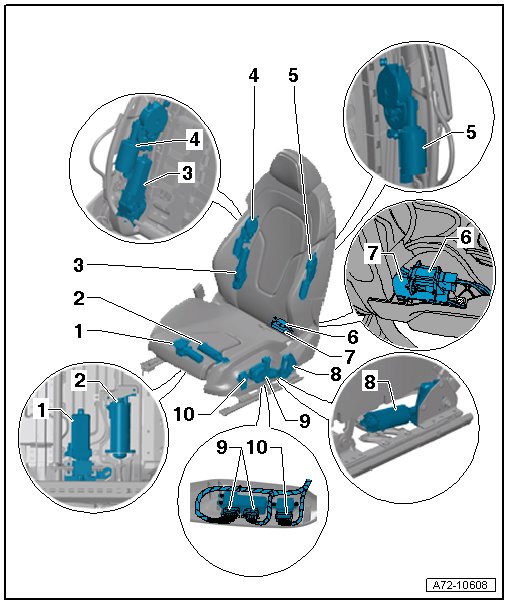 • Driver side (with memory) : Backrest Adjustment Motor -V286- with Backrest Adjustment Position Sensor -G440-