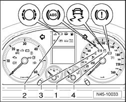 ^ If ABS Warning Lamp K47 - 3 - and Brake System Warning Lamp K118 - 4 - lights up, ABS system is malfunctioning. A change in braking behavior should be checked.