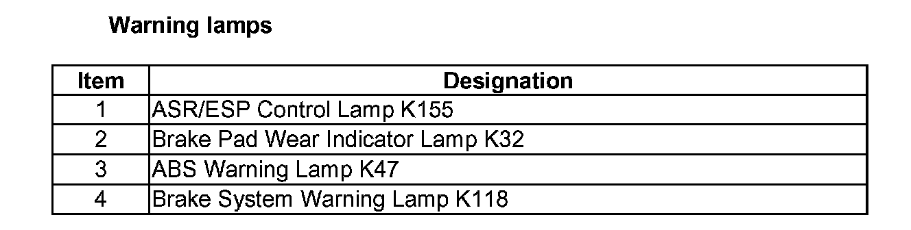 ABS Warning Lamp K47 and Brake System Warning Lamp K118