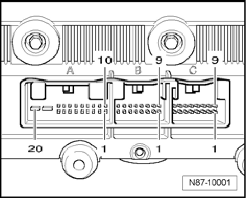 Climatronic Control Module J255, electrical connections A, B C multi-pin connector assignments