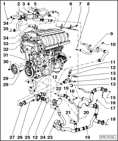 • With the coolant thermostat housing.