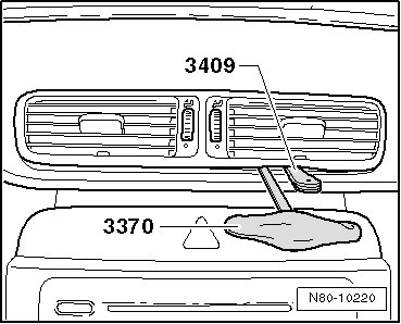 - Pull the center vent out of the instrument panel using the special hook (3370).
