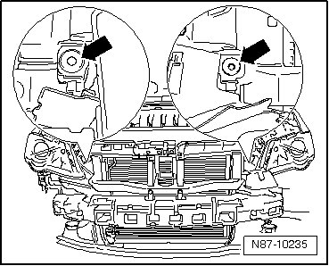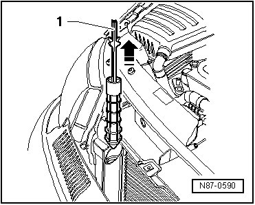 - Carefully push the radiator toward the engine until the cover bolt - arrow - is accessible.