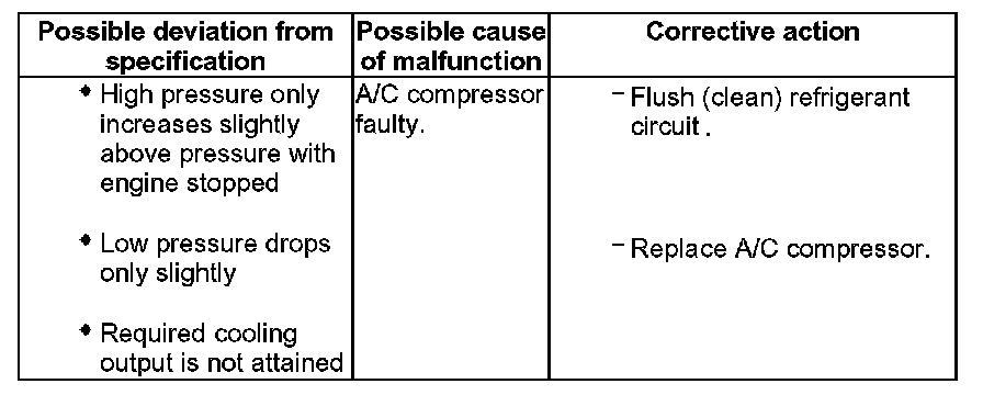 - For the malfunction "high pressure normal, low pressure too low", note the following: