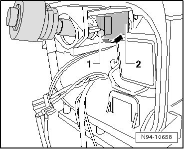 - Press wire bracket - 1 - to the side in - direction of arrow -.