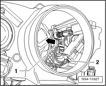 - Guide the headlamp beam adjustment motor - 1 - in the disengaged position completely into its mount.