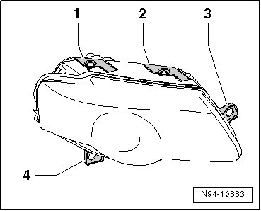 • Replacement of securing lugs on left headlamp and on right headlamp are performed analogously.
