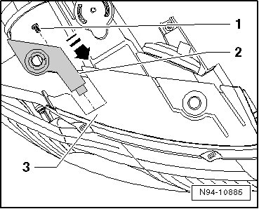 - Insert the new mounting tab - 2 - into the mount - 3 - on the headlamp and secure the securing lug with mounting bolt - 1 -.