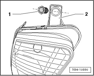 - Insert new mounting tab - 2 - into the mount - 1 - on the headlamp and secure the securing lug with mounting bolt - 3 -.
