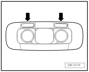 - Disengage retainers - arrows - and remove panel with diffusion lens from interior and reading lights.