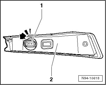 - Rotate lamp socket - 1 - in - direction of arrow - and remove it from turn signal housing - 2 -.