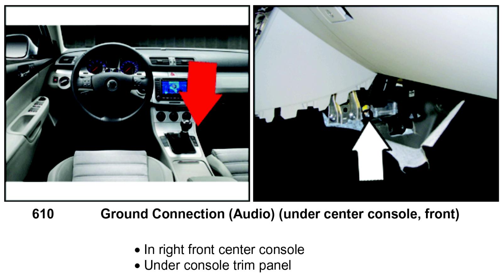 Ground Connection (Audio) (Under Center Console, Front) 610