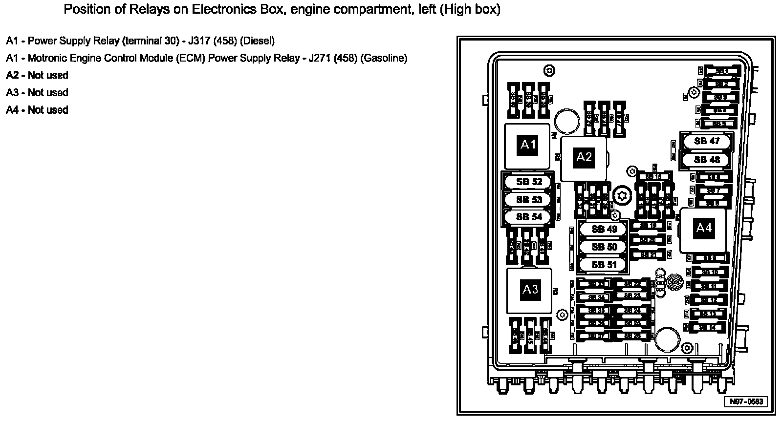 Position Of Relays On Electronics Box, Engine Compartment, Left (High Box):