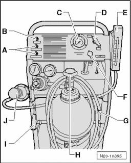 - Connect Vehicle diagnosis, testing and information system VAS 5051B, VAS 5052 or VAS 5053 to vehicle as illustrated.