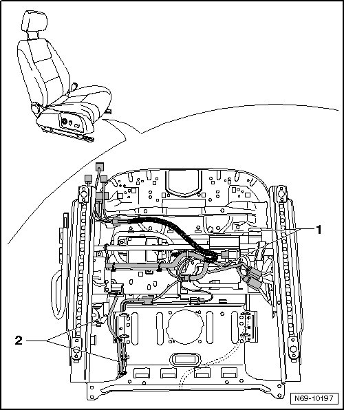 - Disconnect individual harness connectors from wiring harness of backrest - 2 - on seat frame.