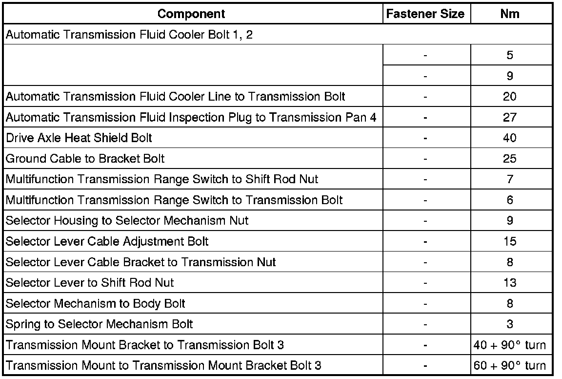 Transmission to Engine Bolt Tightening Specifications