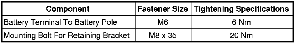 Fastener Tighten Specifications, Battery In Luggage Compartment
