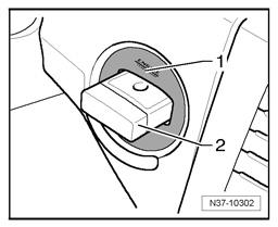 Component location: Ignition lock - 1 - is installed beside steering column in instrument panel.