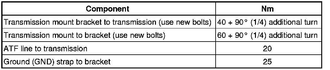 - Before tightening the transmission mount to bracket bolts, reestablish the old seating of the bolts.