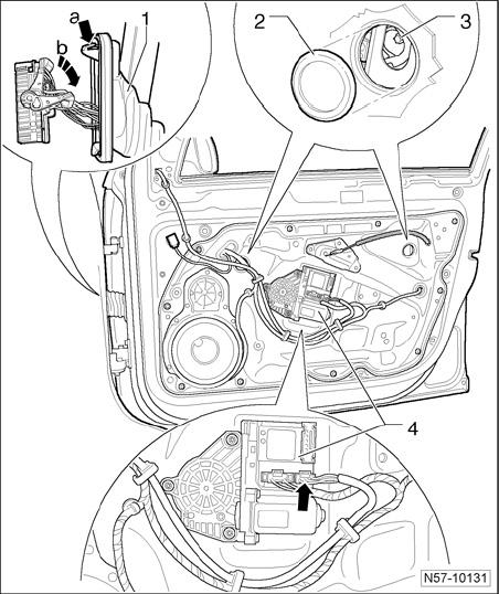 NOTE: If the work step is not possible due to a malfunction via the electrical window regulator, window regulator motor can be unscrewed to be able to slide window down.