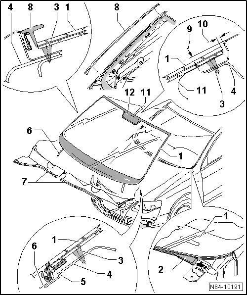 Windshield, removing and installing, refer to => [ Windshield ] Flush Bonded Windows