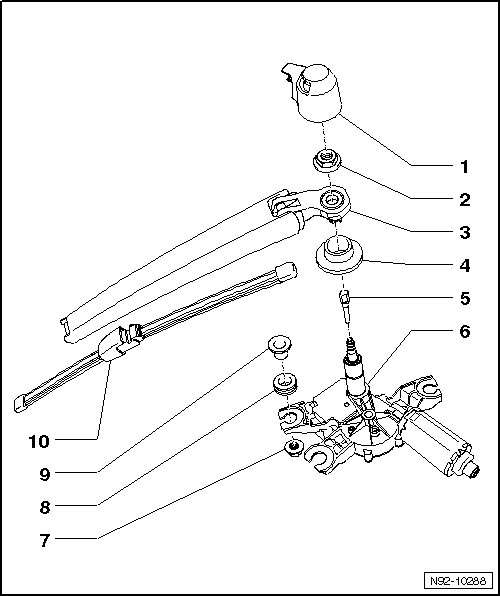 • Removing and installing, refer to => [ Rear Window Wiper Motor ] Rear Window Wiper Motor.