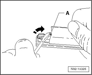 - Using a suitable screwdriver, open wiper blade retainer - A - by bending up.