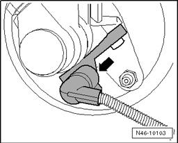 - Disconnect 4-pin connector -arrow- from Brake Light Switch -F-.