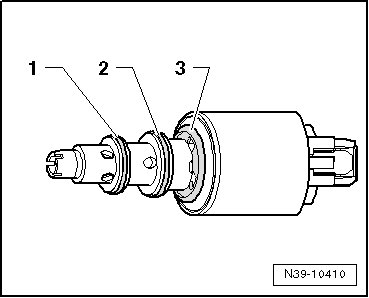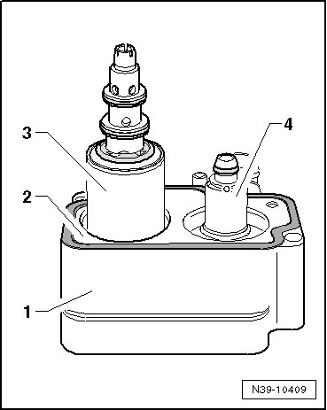 - First coat the sealing ring - 1 - with Haldex oil and mount it on the Haldex clutch control valve.