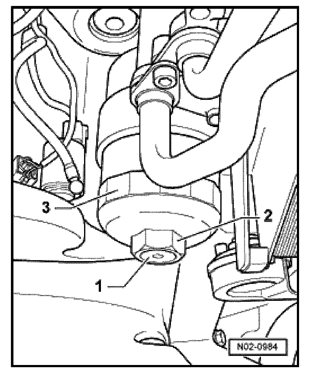 The Oil filter for 8-cyl Gasoline engines is located between the engine block and side rail -arrow-; visable after removal of air cleaner