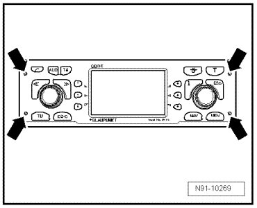 • If radio navigation system is replaced, always activate antitheft coding. Refer to => Owner's Manual. Give the new code number to the customer.