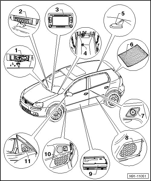 The antitheft code is transmitted via the vehicle diagnosis, testing and information system (VAS 5051) or the vehicle diagnosis and service system (VAS 5052). The radio card and the label on the radio that were used in the past are no longer used.