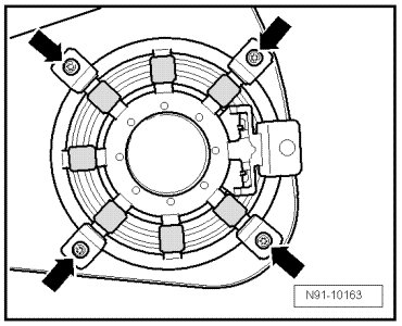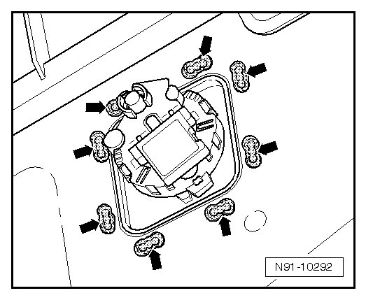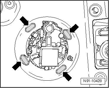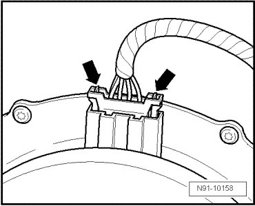 - Release locking mechanism of harness connector - arrows - and disconnect it.
