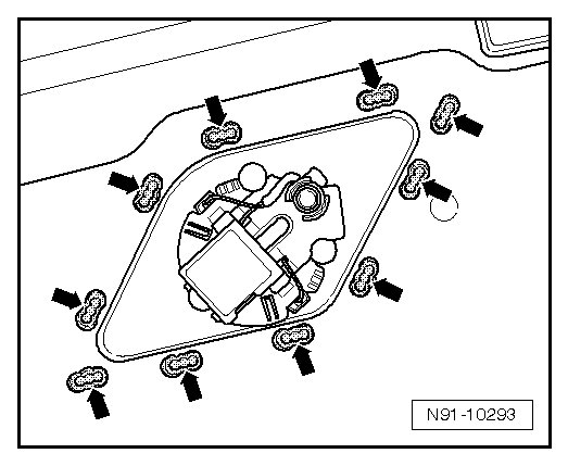 • If plastic clip - arrow - remains on trim, remove it and insert it in door at the installation location. Otherwise trim of mirror triangle can no longer be installed correctly.