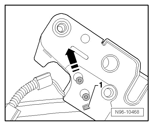 - Disengage retaining tab - 1 - and slide Front Hood Switch (F266) in - direction of arrow -.