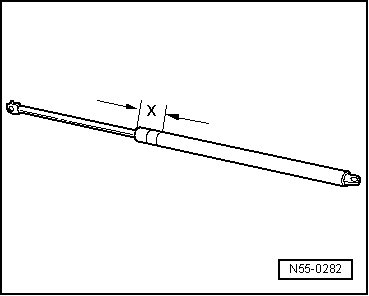 Clamping the gas-filled strut must only be done in this area - x -, otherwise there is a risk of an accident.